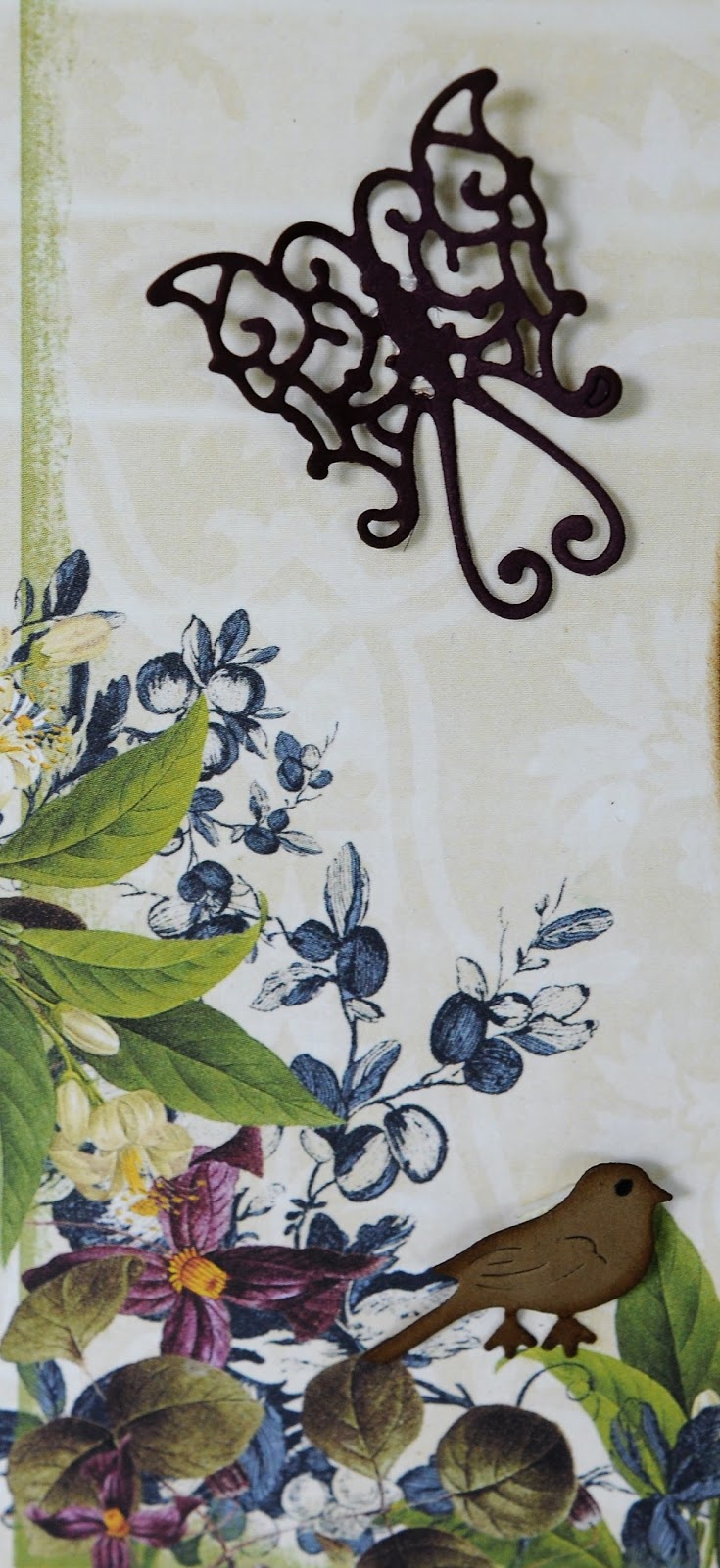 For a quick card it helps to used a pretty paper for the background to build on. In this case it gave me come beautiful flowers and color to perch the bird on.